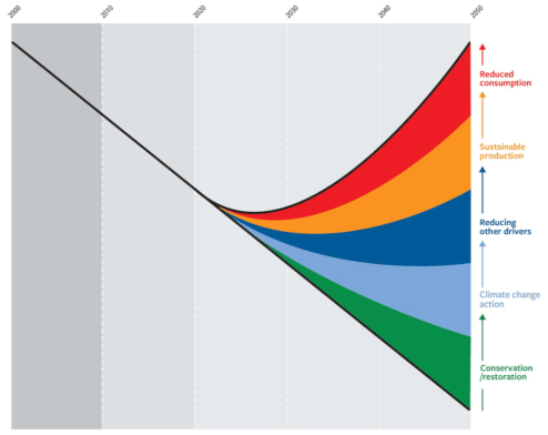 Los informes nacionales al CDB ofrecen evidencia de que las transiciones necesarias para proteger la biodiversidad ya han comenzado y que prácticamente todos los países están tomando medidas. El GBO-5 cita varias acciones y programas nacionales ejemplares, en ausencia de los cuales las condiciones ciertamente serían peores (habría mayores extinciones, por ejemplo). Adicionalmente, las tasas de deforestación continúan cayendo, la erradicación de especies exóticas invasoras de las islas está aumentando y la conciencia sobre la biodiversidad parece estar aumentando.