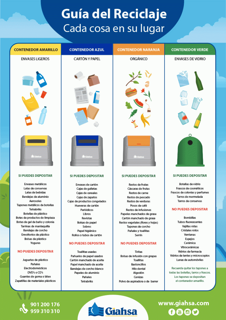 Con el reciclaje todo son ventajas. Por eso, te invitamos a descargar la Guía del Reciclaje, la cual te será muy útil para conocer los diferentes tipos de contenedores y qué residuos puedes depositar en cada uno de ellos.