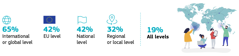 Una proporción significativa de los encuestados también cree que las acciones deben llevarse a cabo en todos los niveles simultáneamente (19%).